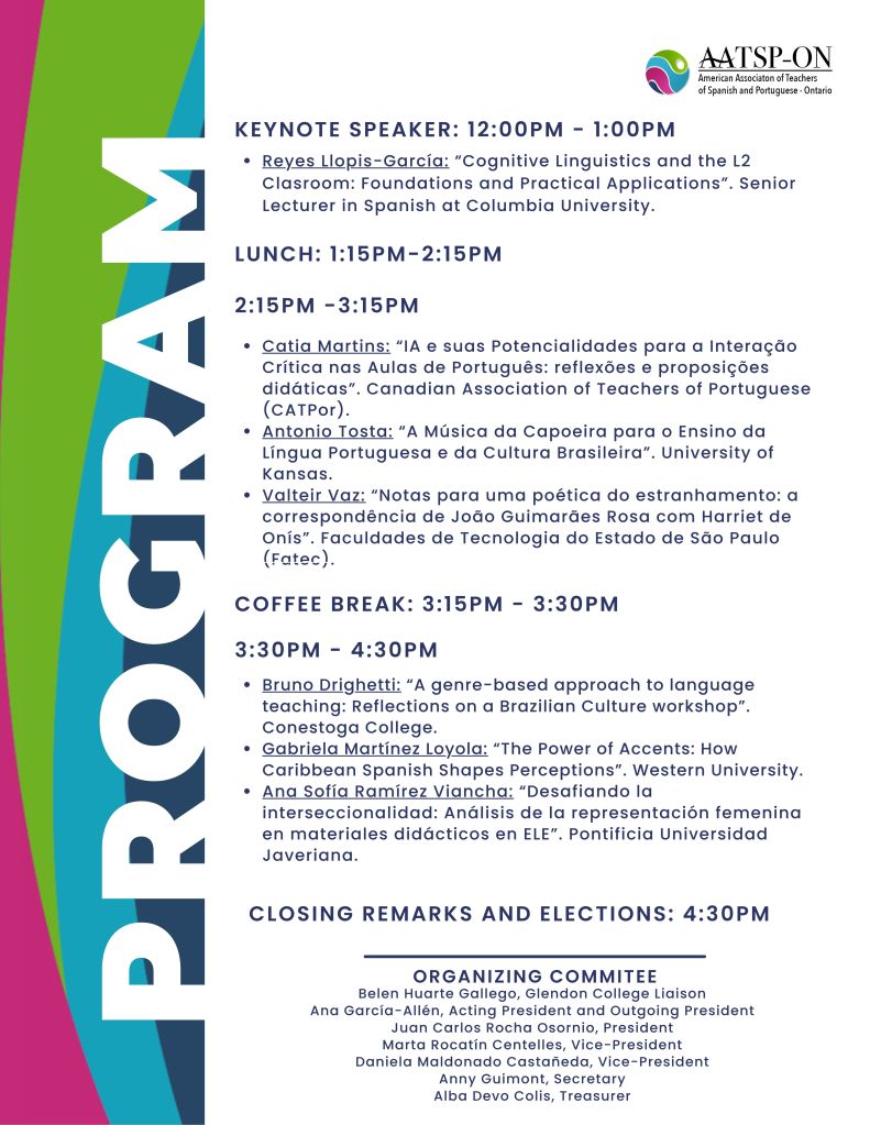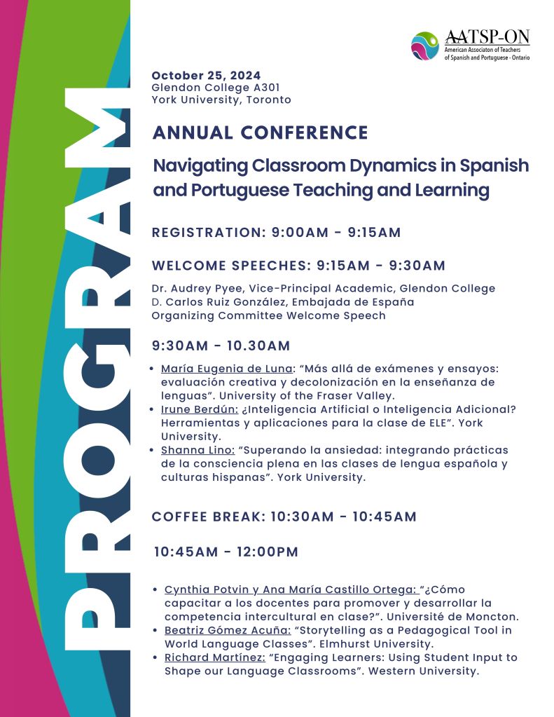 The AATSP-ON organizing committee invites all Ontario-based and Canadian teachers/professors of Spanish and Portuguese to become members of the association and to participate in our annual conference.